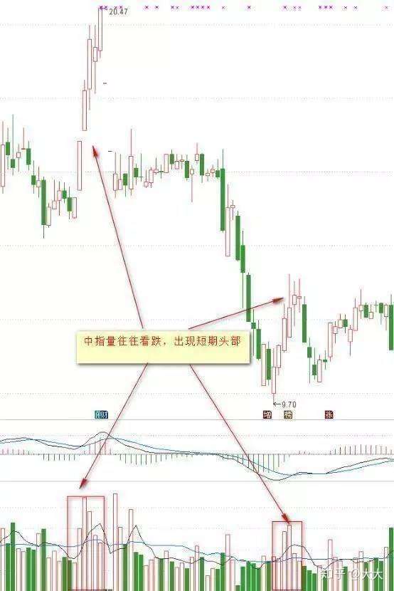 1、中指量,中指量形态:取五笔成交量做观察,第三笔为这五笔的最大量,并以该笔分别向左右递减,则该笔即为中指量。五根K线不要求全阳或全阴。中指量一般被看做是看跌形态成交量,但在底部时需要注意区分。