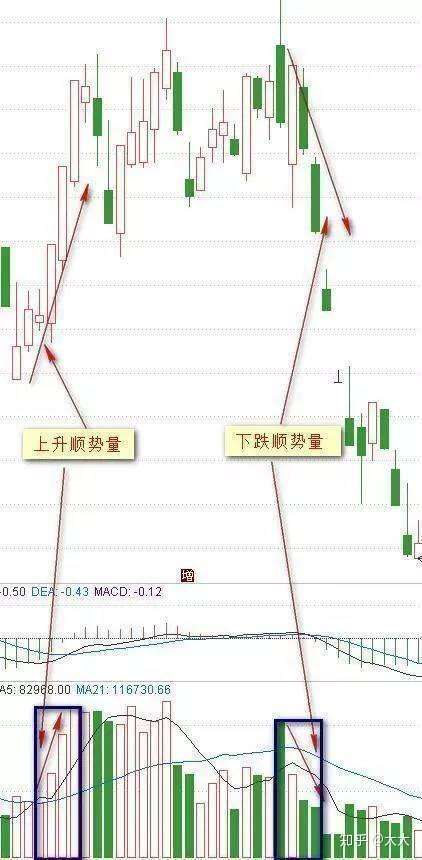 2、顺势量,顺势量是指量增价增,量缩量跌的形态(即股价上涨时成交量跟着放大,股价下跌时,成交量跟着递减)。股价在上涨途中出现上涨顺势量,则为健康的多头走势,手中有股的可继续持股。在上涨途中出现顺势量,亦可寻机会做多。